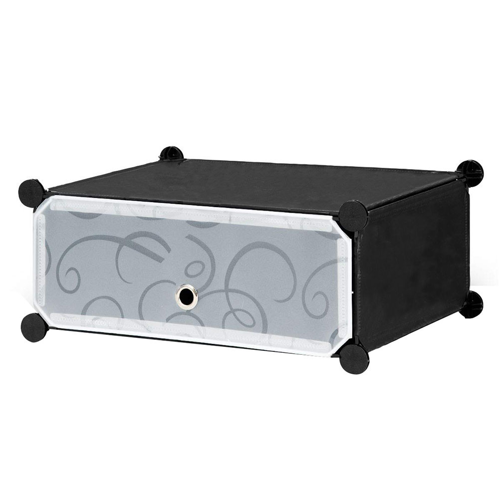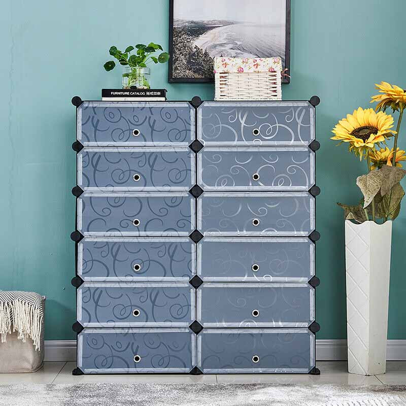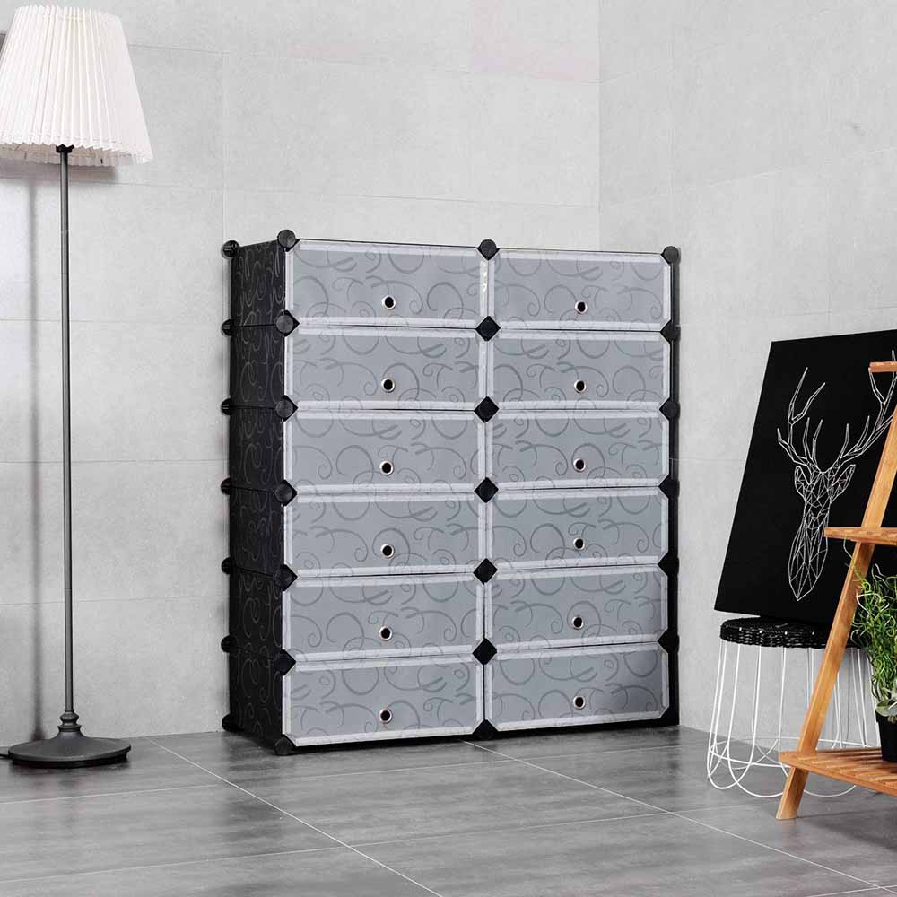 Skříň je vyrobena z odolných plastových panelů a pevných spojovacích prvků, díky čemuž nabízí lehké, ale stabilní řešení pro ukládání obuvi. Díly lze snadno zacvaknout dohromady, což umožňuje rychlou montáž i jednoduchou přestavbu podle potřeby.