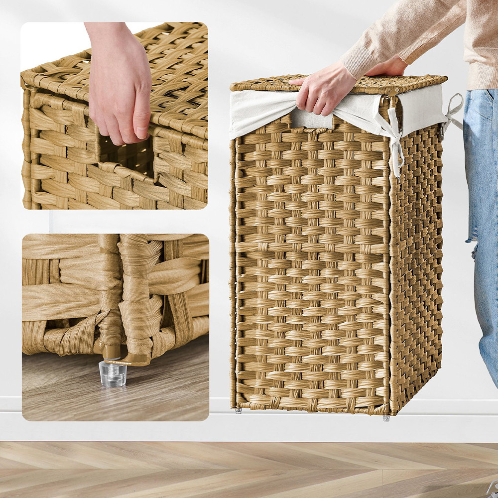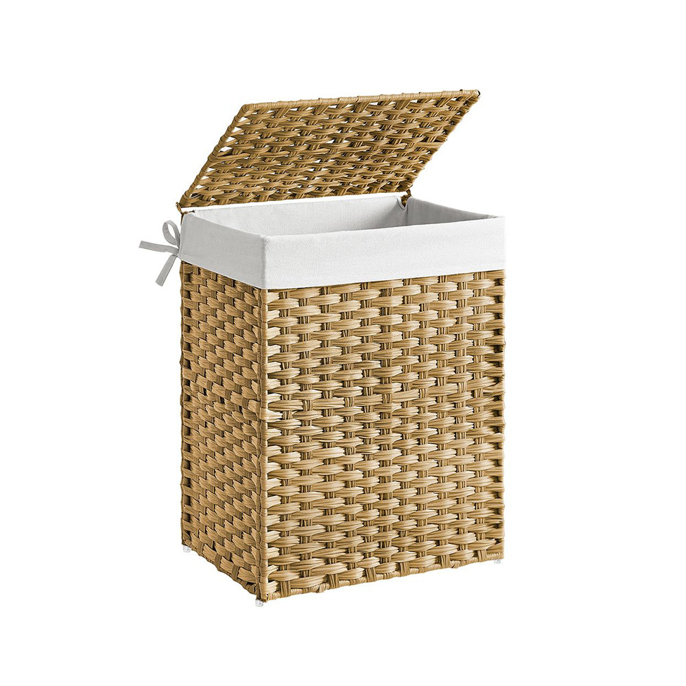 Tento 90litrový koš na prádlo s ratanovým efektem je elegantním doplňkem každé ložnice či koupelny. Přírodní barva výpletu a moderní tvar dokonale zapadnou do každého interiéru a udrží prádlo uspořádané.