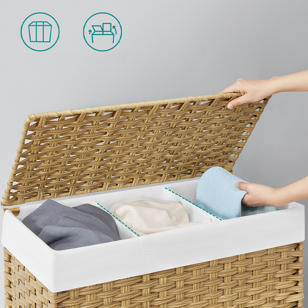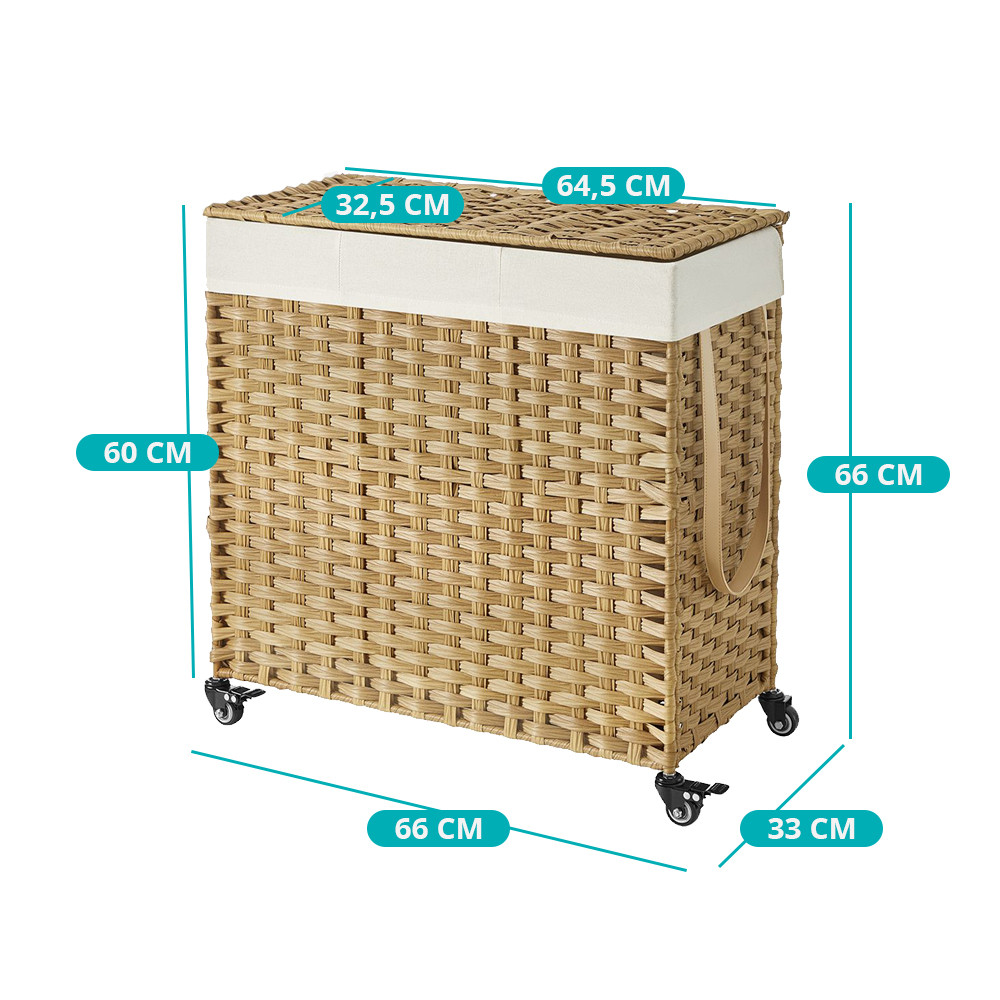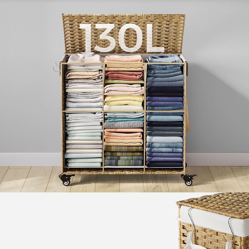 Tento 130litrový koš na prádlo s ratanovým efektem je skvělou volbou pro větší domácnosti. Díky třem samostatným sekcím snadno roztřídíš světlé, tmavé a jemné prádlo – praní tak bude rychlejší a přehlednější.