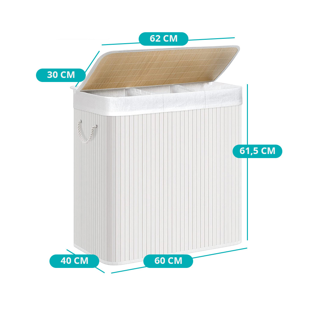 Tento 150litrový koš na prádlo se třemi přihrádkami ti pomůže udržet přehled při třídění prádla – snadno oddělíš světlé, tmavé i jemné oblečení. Díky bílé barvě a čistému designu se harmonicky hodí do každého interiéru.