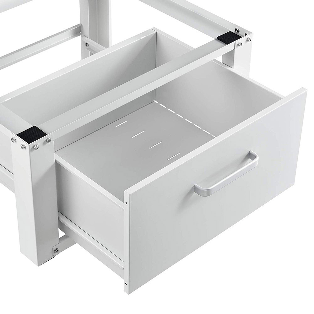 Podstavec zvedne vaši pračku nebo sušičku o 31 cm, což usnadňuje přístup k bubnu. Vysouvací šuplík nabízí praktické úložné místo pro všechny potřeby na praní, čímž pomáhá udržovat pořádek a šetří místo.