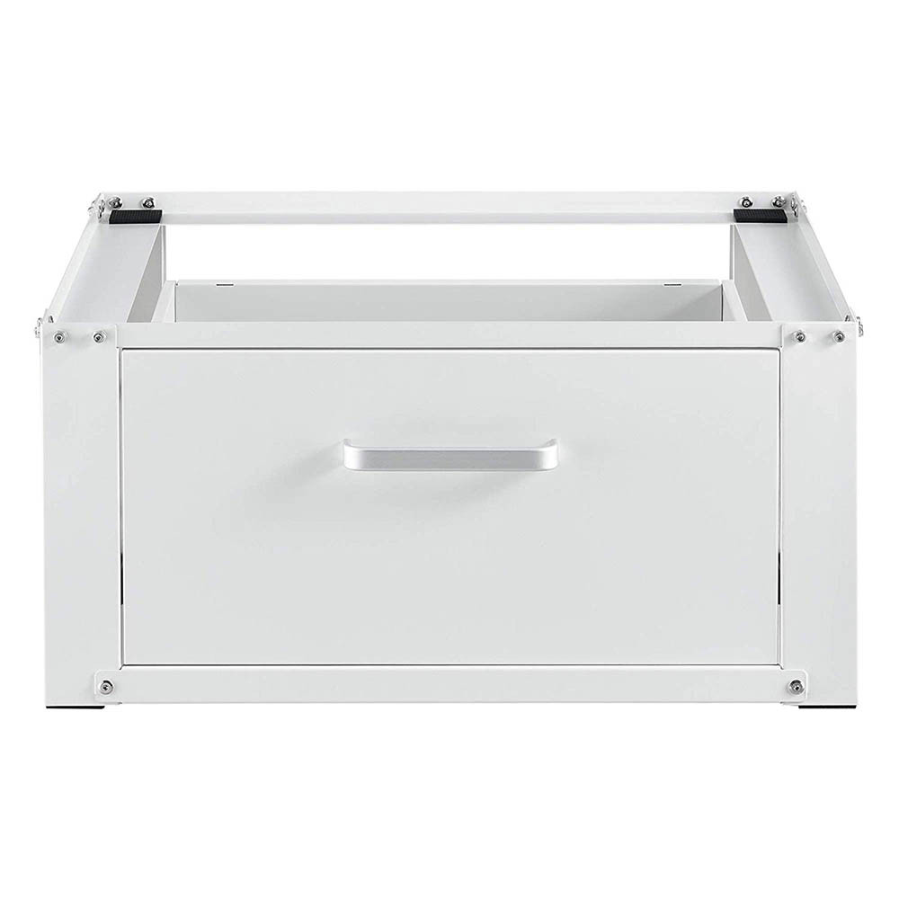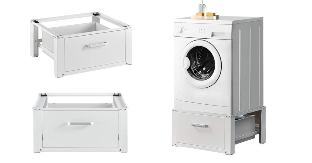 Podstavec lze snadno sestavit pomocí přiloženého návodu. Jednoduchý design v bílé barvě působí esteticky a hodí se do každé koupelny nebo prádelny. Před nákupem doporučujeme ověřit rozměry vašeho zařízení.
