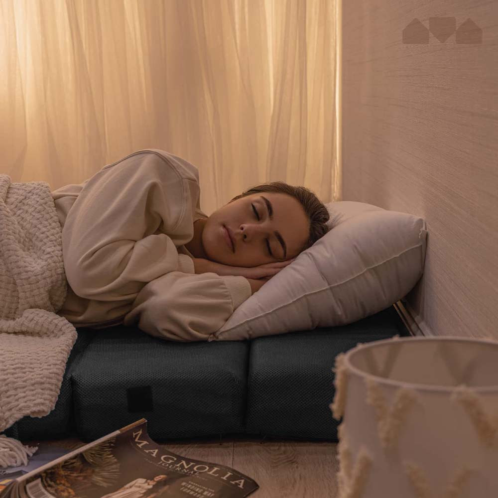 10 cm silná vrstva polyuretanové pěny poskytuje skvělou oporu, ať už ležíte nebo sedíte. Po složení slouží jako pohovka nebo křeslo s opěrkou, takže je skutečně multifunkčním kouskem.