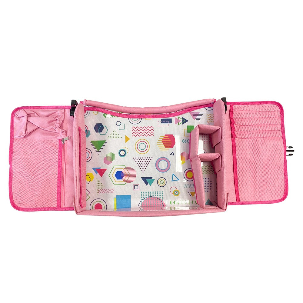 Během delších cest poskytuje přenosný dětský stolek praktické řešení pro uložení hraček, výtvarných potřeb nebo tabletu. Vysoký okraj zabrání pádu předmětů, takže si děti mohou klidně hrát, kreslit nebo sledovat pohádky.