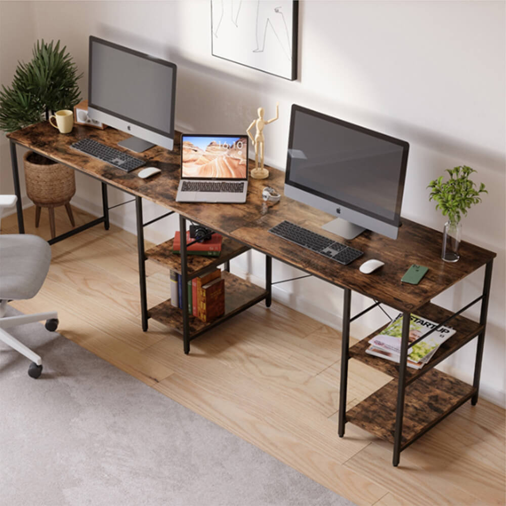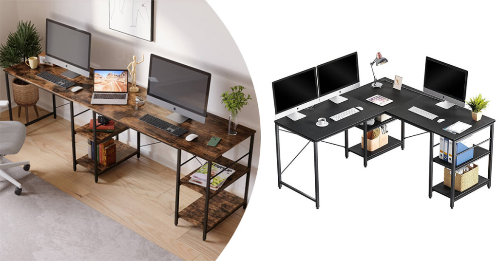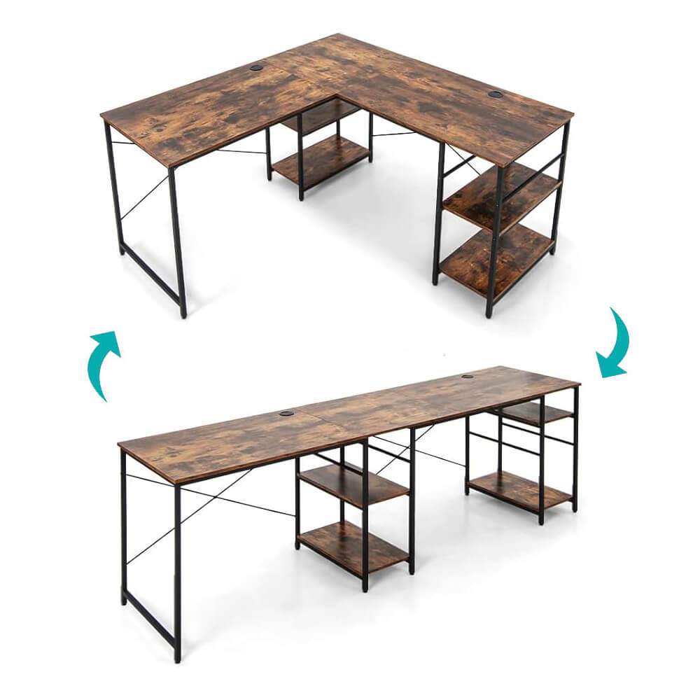 - 1 přestavitelný L-formový psací stůl s policemi