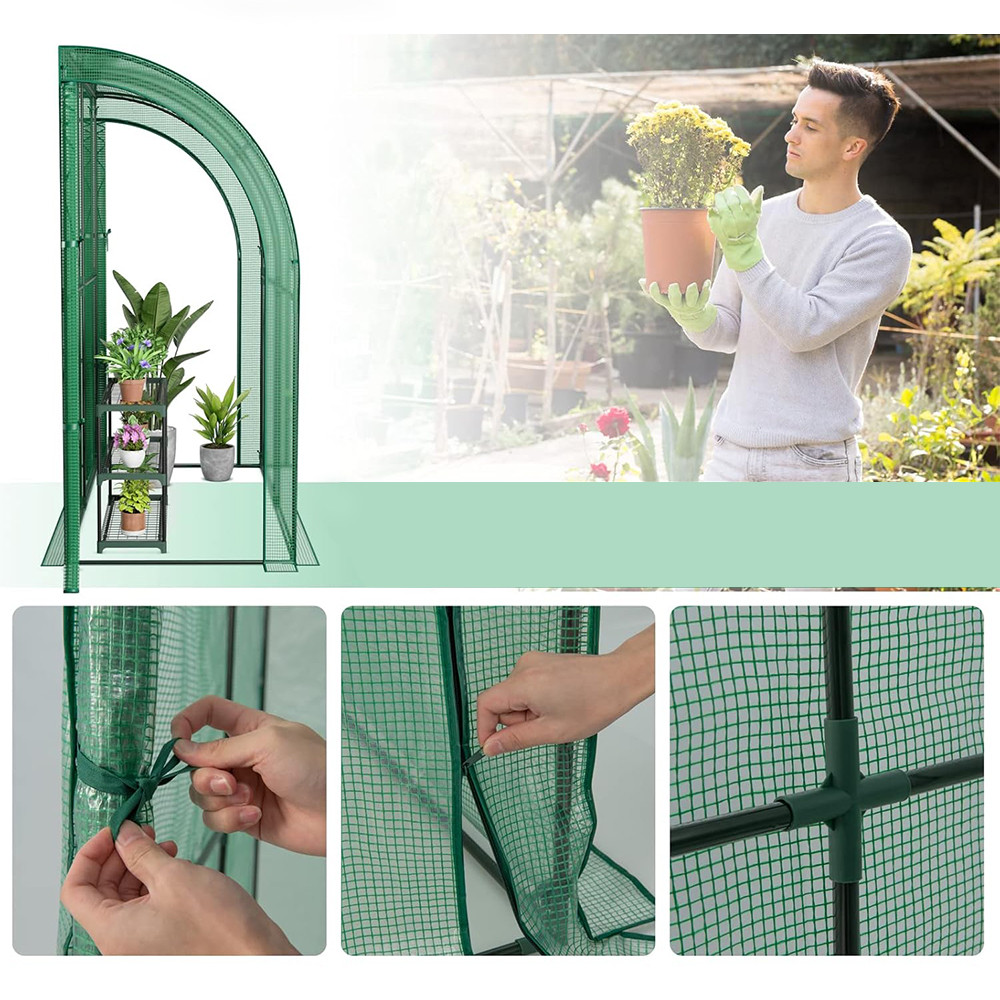 Práškově lakovaný kovový rám zajišťuje pevnou oporu a voděodolný PE potah s UV ochranou chrání rostliny. Kotvící kolíky do země, upevňovací lana a prvky pro montáž na zeď zvyšují odolnost proti větru i celkovou stabilitu.