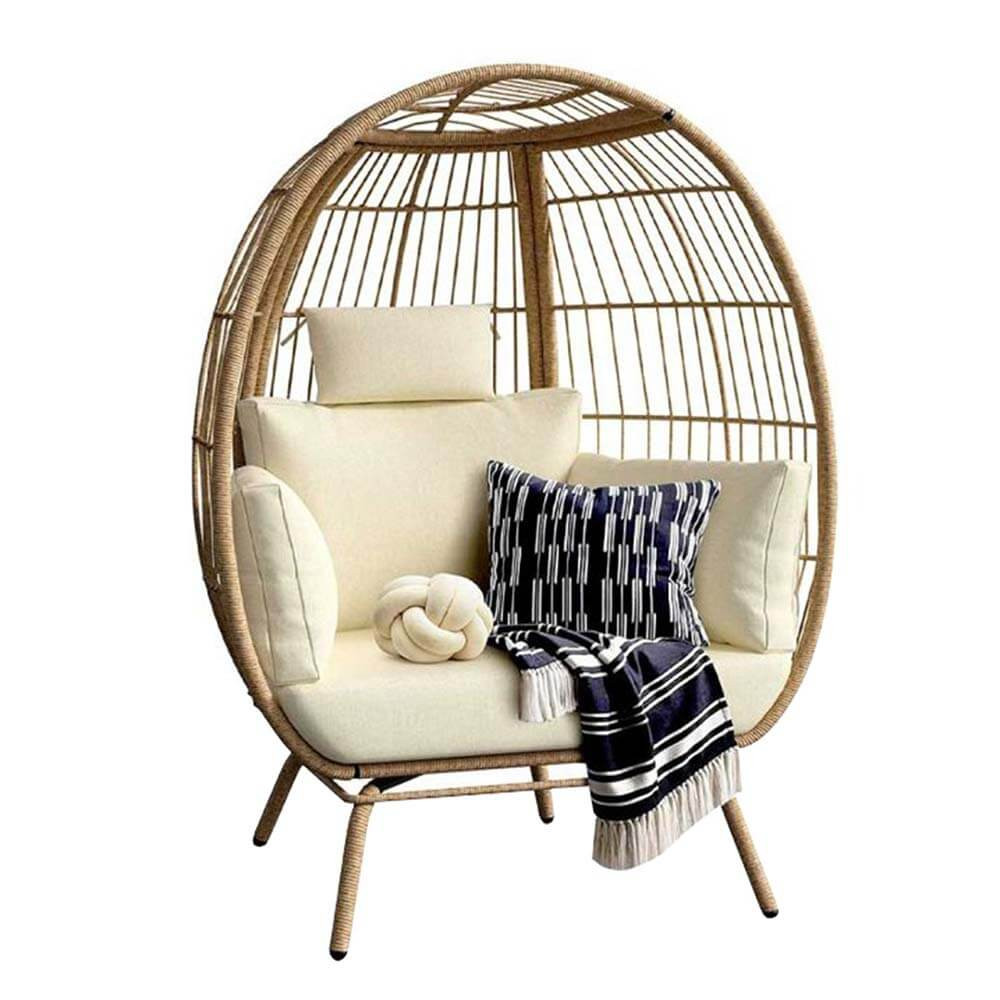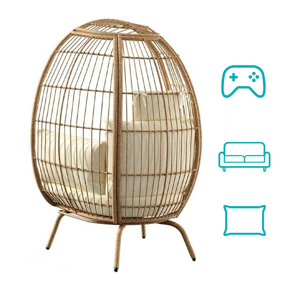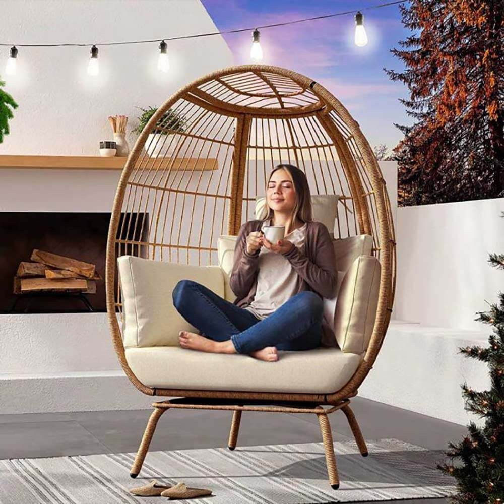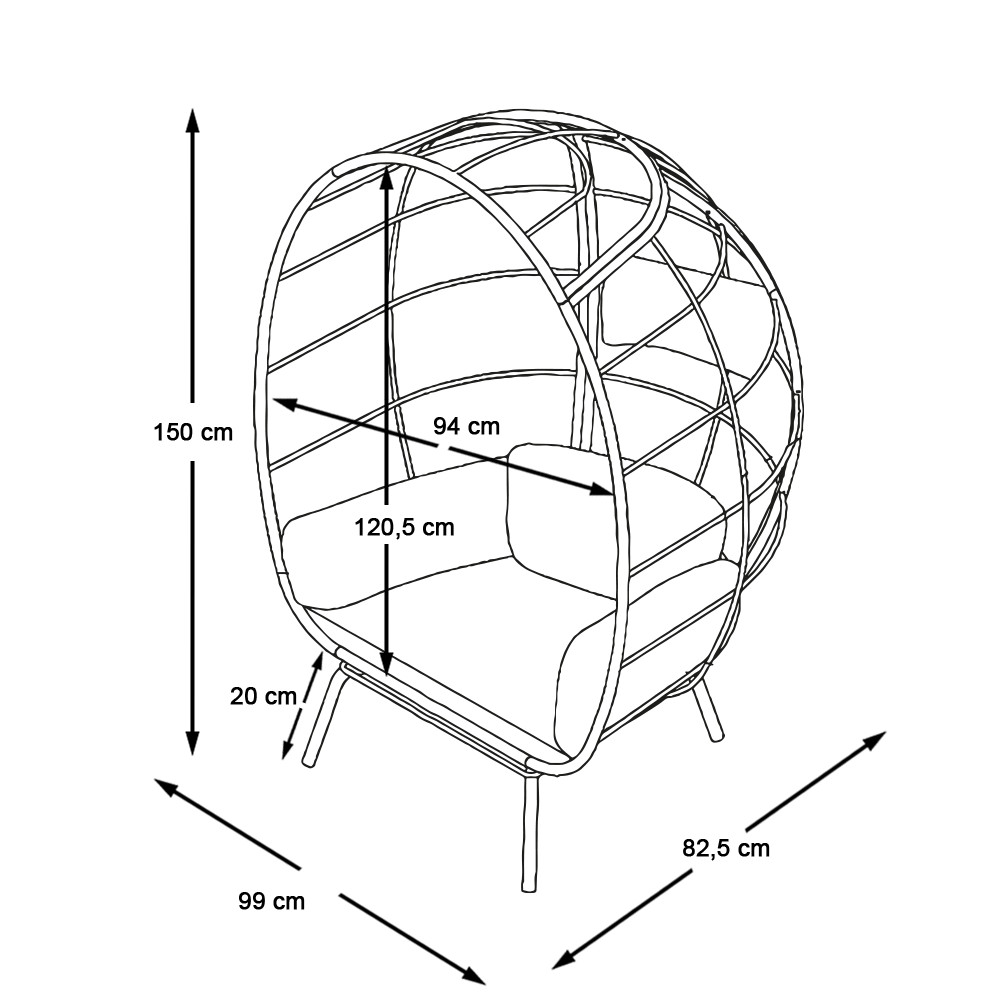 Toto křeslo je ideální jako relaxační prvek do obývacího pokoje, ale výborně se hodí i pro venkovní použití. Díky odolným materiálům a snadné montáži je praktickou a stylovou volbou pro každý prostor.