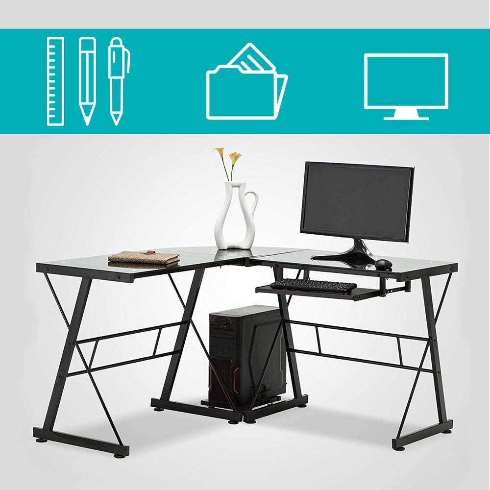 L-formový design umožňuje vytvořit více funkčních oblastí. Na jedné straně je dostatek místa pro notebook, velký monitor nebo dokonce dvojitou obrazovku, zatímco druhá strana poskytuje prostor pro úložné boxy, poznámky a další pracovní pomůcky.