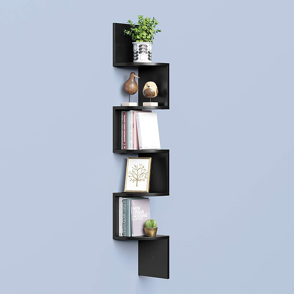Tato 5úrovňová nástěnná rohová police v moderním černém provedení je skvělým řešením pro stylové využití malých koutů. Díky jemně zaobleným hranám je vhodná i do domácností s dětmi. Nabízí praktické místo pro uložení knih, rostlin nebo drobných dekorací a zároveň oživí roh obývacího pokoje, ložnice nebo pracovny.
