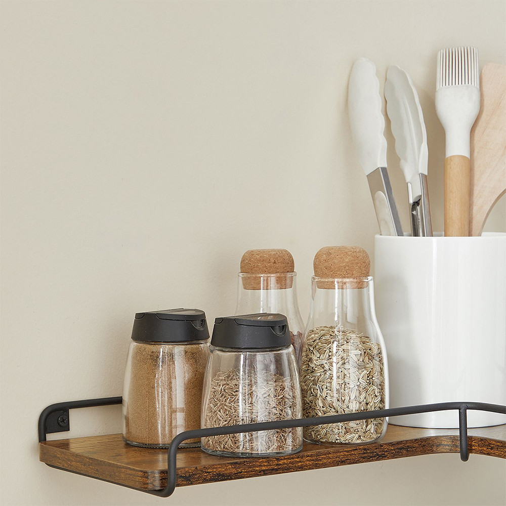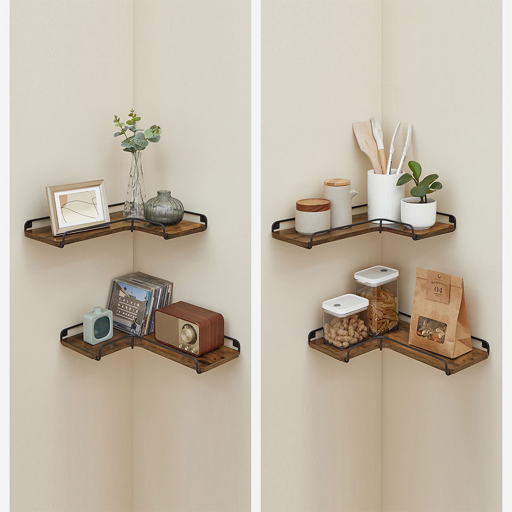 Rustikálně hnědé police a černý ocelový rám společně vytvářejí moderní industriální vzhled, který se hodí do obývacího pokoje, ložnice, kuchyně nebo pracovny. Zaoblené rohy jsou nejen estetické, ale i bezpečné.