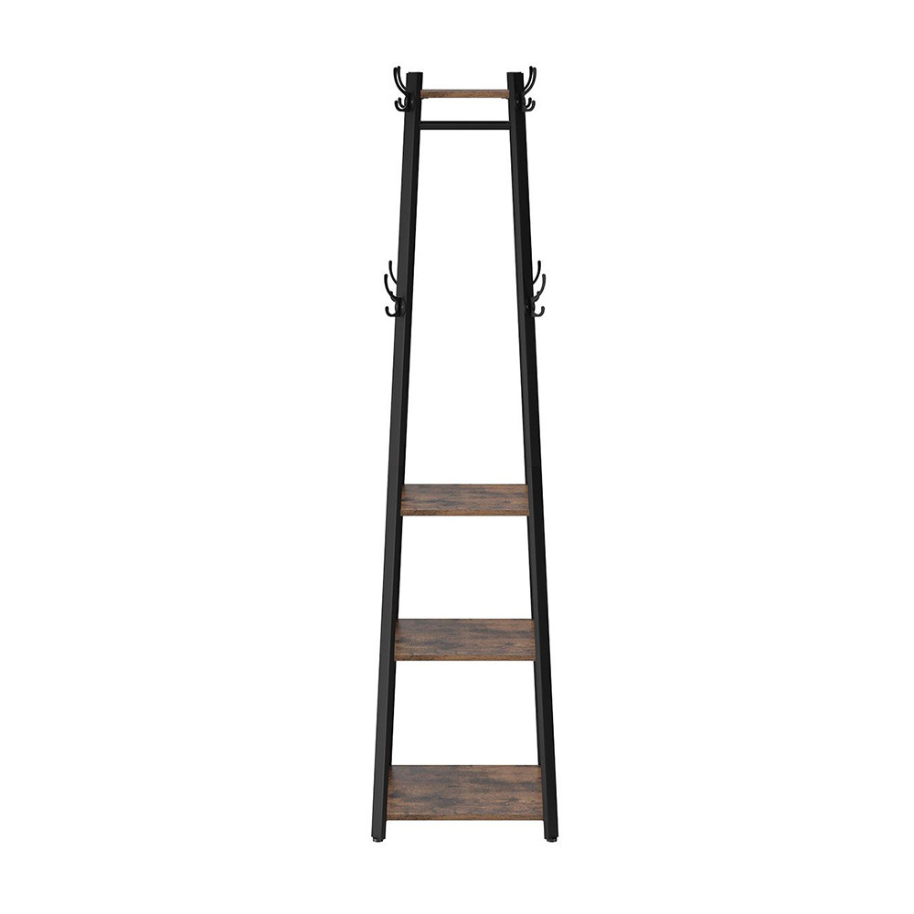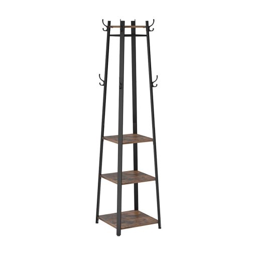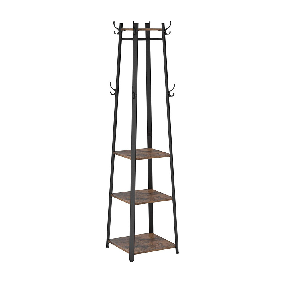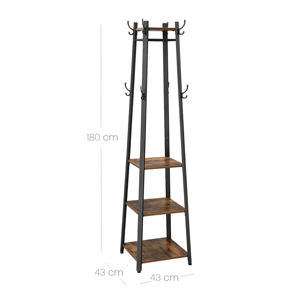 Kombinace ocelové konstrukce v industriálním stylu a rustikálních polic vytváří moderní, ale zároveň útulnou atmosféru. Věšák není jen praktickým úložným místem, ale i výrazným designovým prvkem, který okamžitě oživí předsíň nebo roh obývacího pokoje.