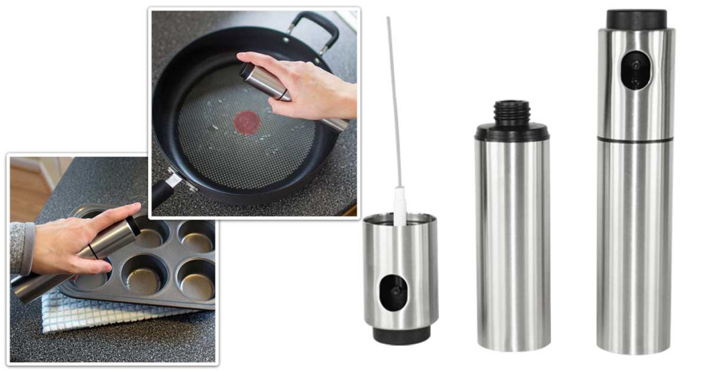 Tento sprej s tlačítkem umožňuje rovnoměrné a přesné nanášení oleje na pokrmy. Usnadňuje zdravější přípravu jídel a snižuje spotřebu i plýtvání olejem.