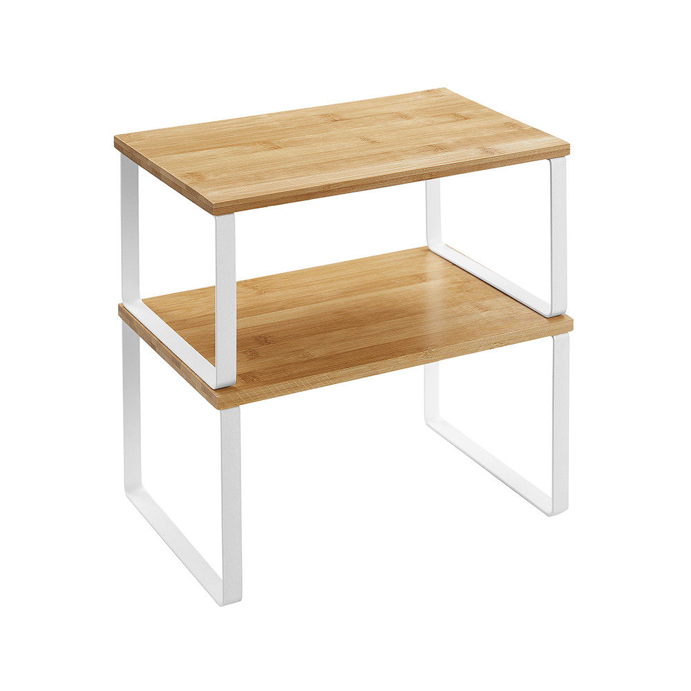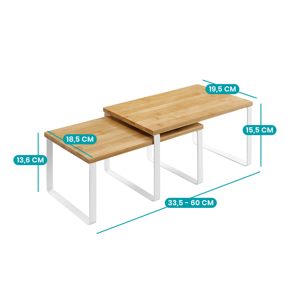 Chceš se zbavit nepořádku na lince a ve skříňkách? Tato sada 2 polic pomáhá přehledně uspořádat koření, konzervy, hrníčky nebo doplňky ke kávě a zároveň přináší do kuchyně přírodní styl.