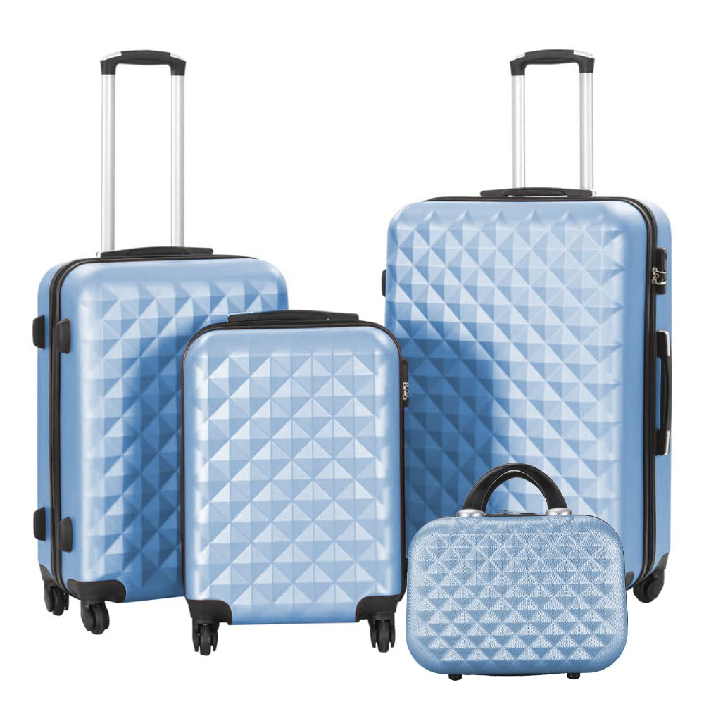 Tato 4dílná sada cestovních kufrů je perfektní volbou pro krátké i delší cesty. Tři kufry různých velikostí a praktická kosmetická taška umožní pohodlné a přehledné balení. Pevná konstrukce chrání obsah, čtyři kolečka a teleskopická rukojeť zajišťují snadnou manipulaci.