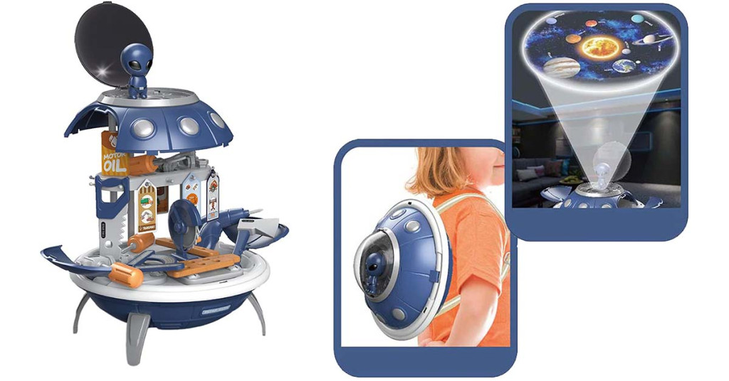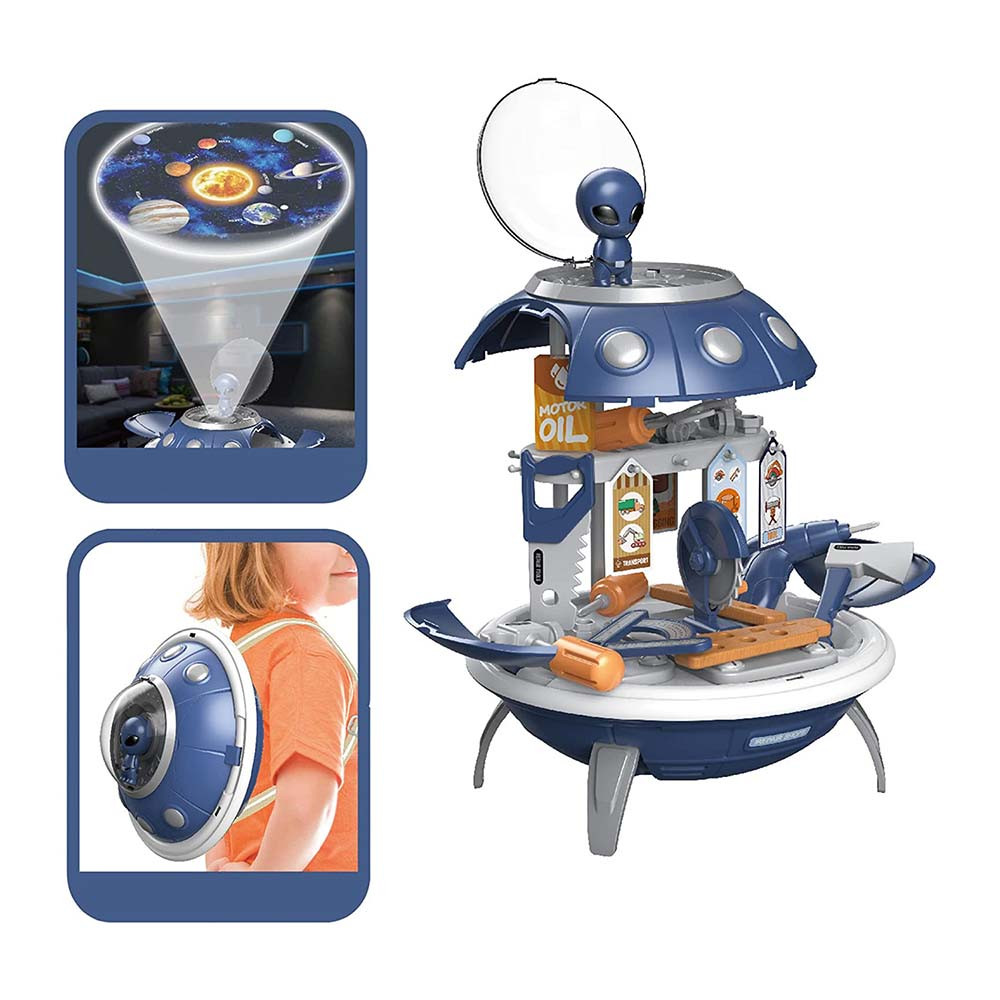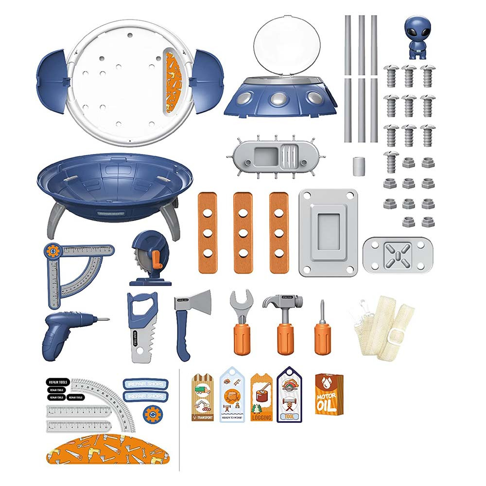 Se sadou nářadí UFO a projektorem může být kutilství pro vaše dítě skutečným zážitkem. Po zapojení do sítě projektor na vrcholu vesmírné lodi promítá nebeská tělesa, což dětem pomáhá rozvíjet jejich představivost a učit se. Díky praktickému designu sady nářadí UFO lze příslušenství na konci dne uložit do hry.