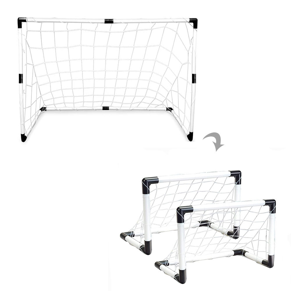 Speciální design sady umožňuje sestavení jedné velké branky (112×77×50 cm) nebo dvou menších branek (59×41×28 cm). Ideální pro různé počty hráčů nebo hry v omezeném prostoru.