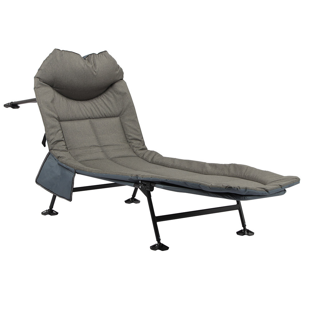 Robustní kovový rám a protiskluzové nohy zajistí stabilitu i na nerovném povrchu. Lůžko unese až 120 kg a poskytne spolehlivou oporu i při delším odpočinku.