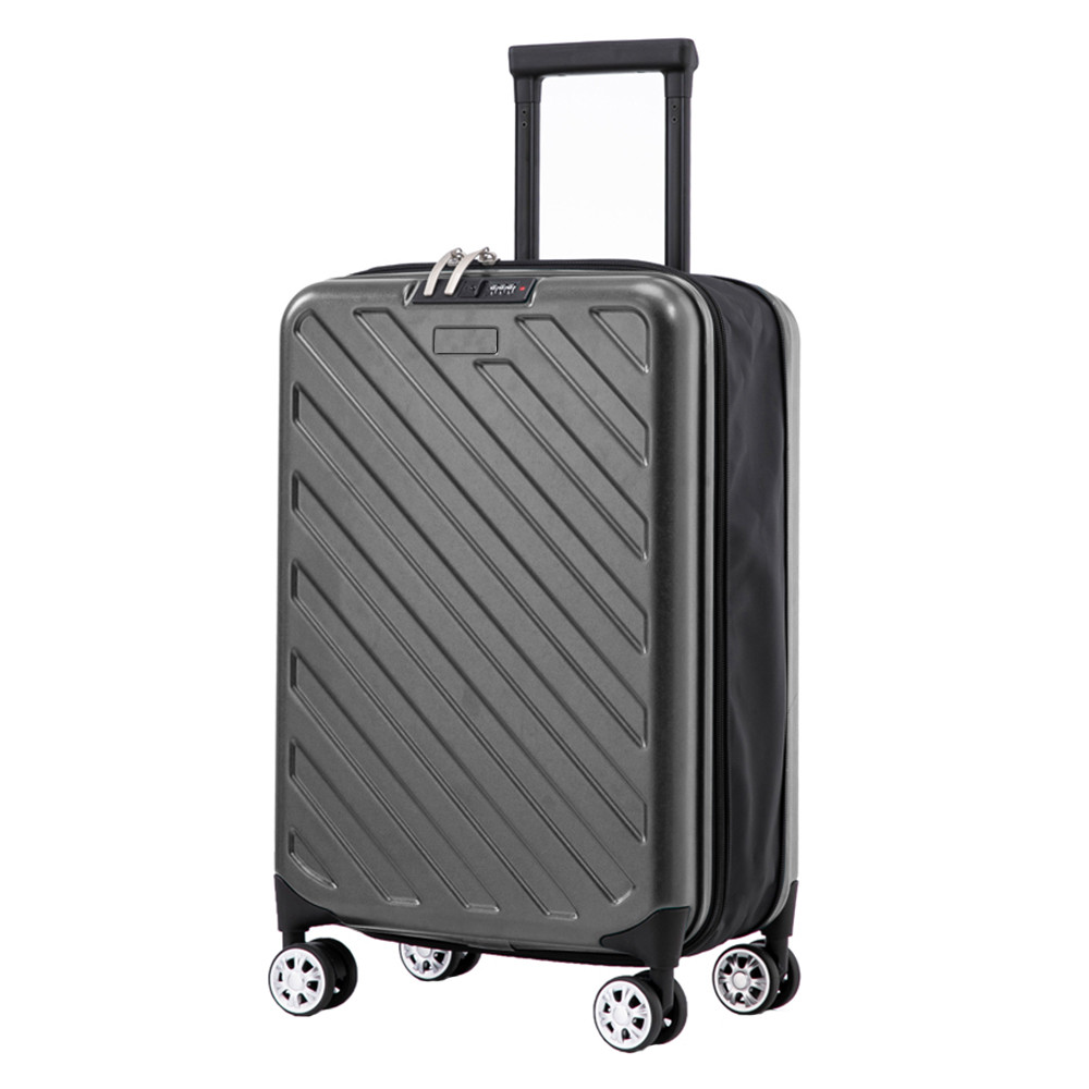 Kufr je vyroben z odolného materiálu PC+ABS, který odolává nárazům i poškrábání. Vysouvací rukojeť z hliníkové slitiny je pevná, ale lehká, což zajišťuje pohodlné používání i při delších cestách.