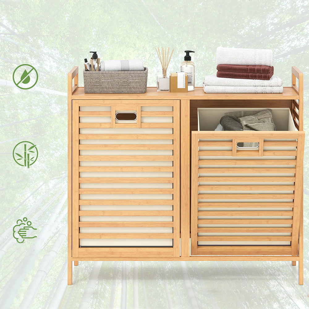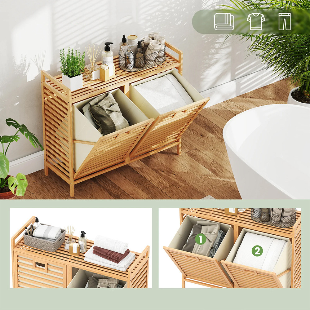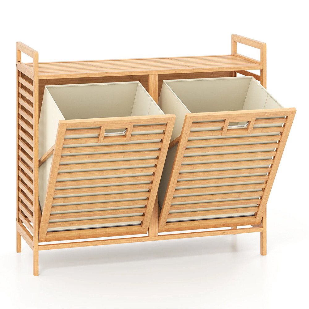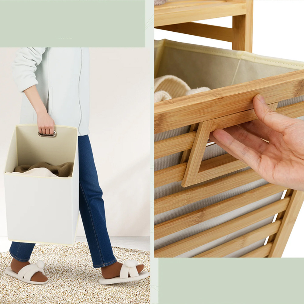 Textilní koše lze snadno vyjmout, takže prádlo jednoduše přeneseš k pračce. Zpevněné dno zajišťuje stabilní oporu při každodenním používání.