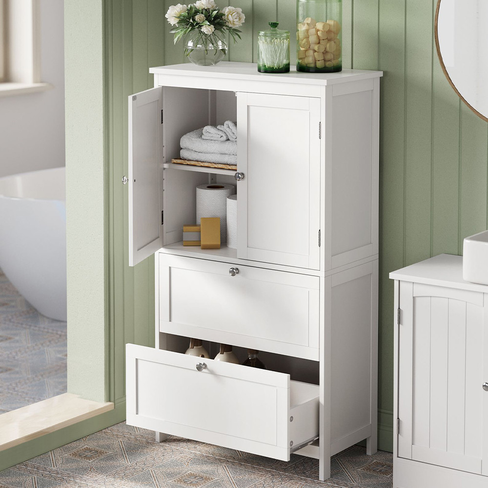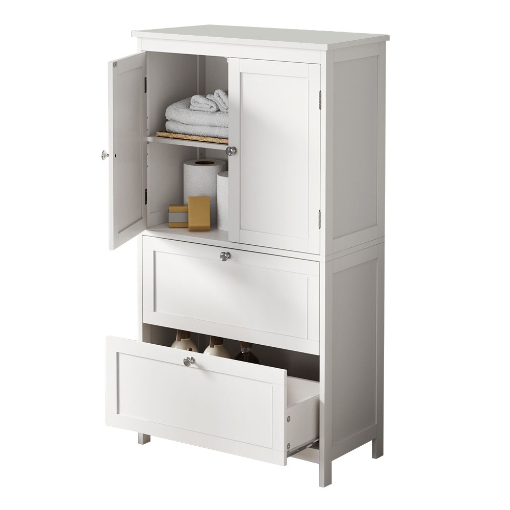 Do dvou zásuvek můžete uložit věci denní potřeby a za dvířky na nastavitelné polici uspořádat ručníky, náhradní toaletní papír a další předměty.