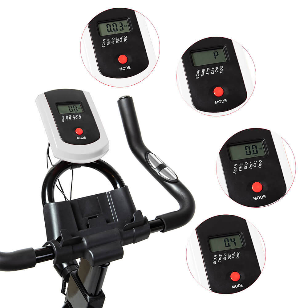 Vestavěný LCD displej zobrazuje čas, rychlost, vzdálenost a spálené kalorie – snadno tak sleduješ svůj výkon a vývoj. Dvě AAA baterie jsou součástí balení.