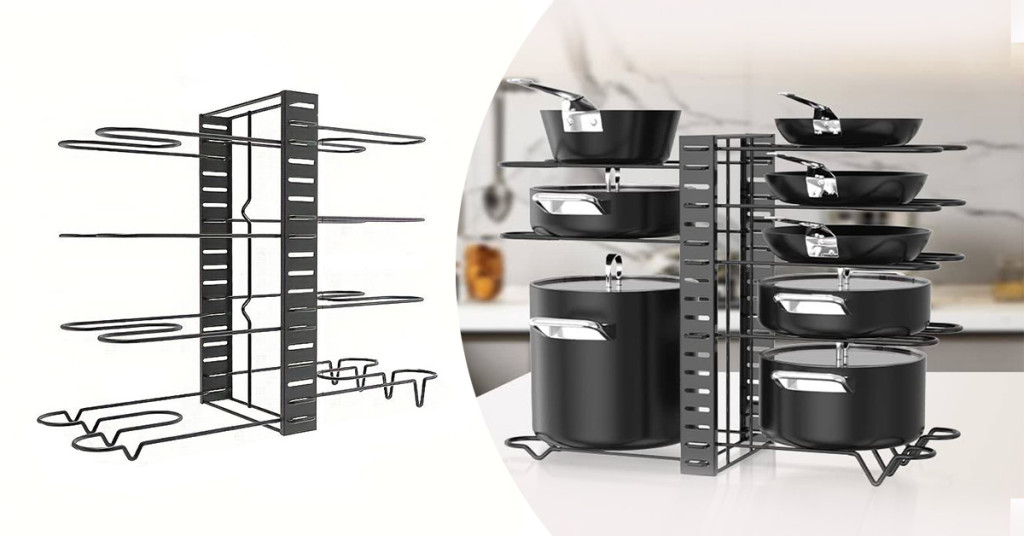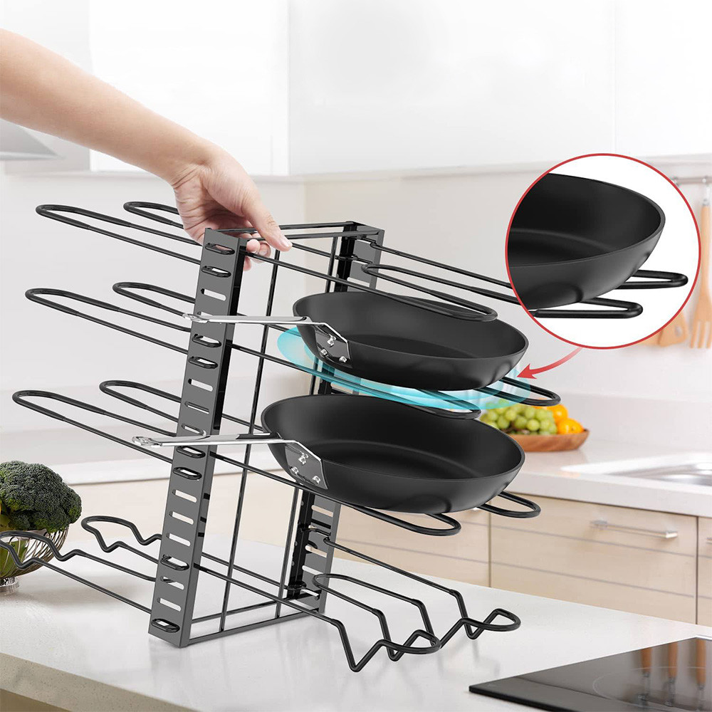 Vícepatrový organizér ti pomůže zbavit se chaosu v přeplněných zásuvkách a skříních. Díky odděleným úrovním má každý hrnec, poklička nebo deska své místo.