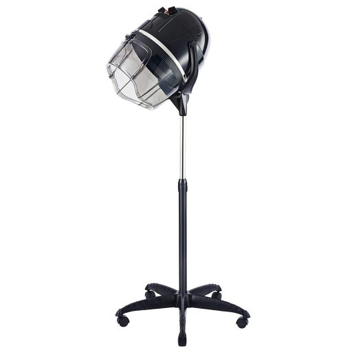 Průhledný kryt umožňuje kontrolu vlasů během sušení, zatímco chromovaná kovová konstrukce a odolné plastové prvky zajišťují dlouhou životnost. Stabilní základna o průměru 60 cm poskytuje pevnou oporu, zatímco 220 cm dlouhý napájecí kabel zajišťuje dostatečný dosah při umístění.