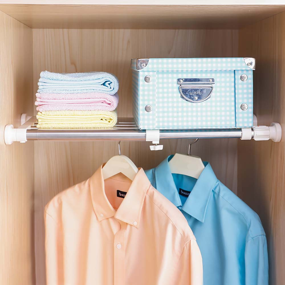 Bez nutnosti vrtání či složité montáže – teleskopickou polici lze snadno nainstalovat a podle potřeby přesunout. Tato flexibilní možnost vám umožní rychle a jednoduše vytvořit nové úložné prostory, ať už uvnitř skříně nebo na jiných úzkých místech.