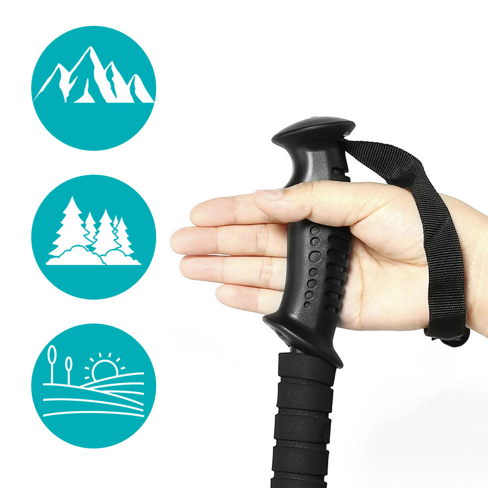 Tato teleskopická turistická hůl je skvělá společnice pro delší túry i náročný terén. Protiskluzová rukojeť, páska na zápěstí a 5 párů výměnných hrotů zajistí, že váš walk zážitek bude bezpečný a pohodlný za každých podmínek, a díky kompaktní velikosti se snadno přenáší.