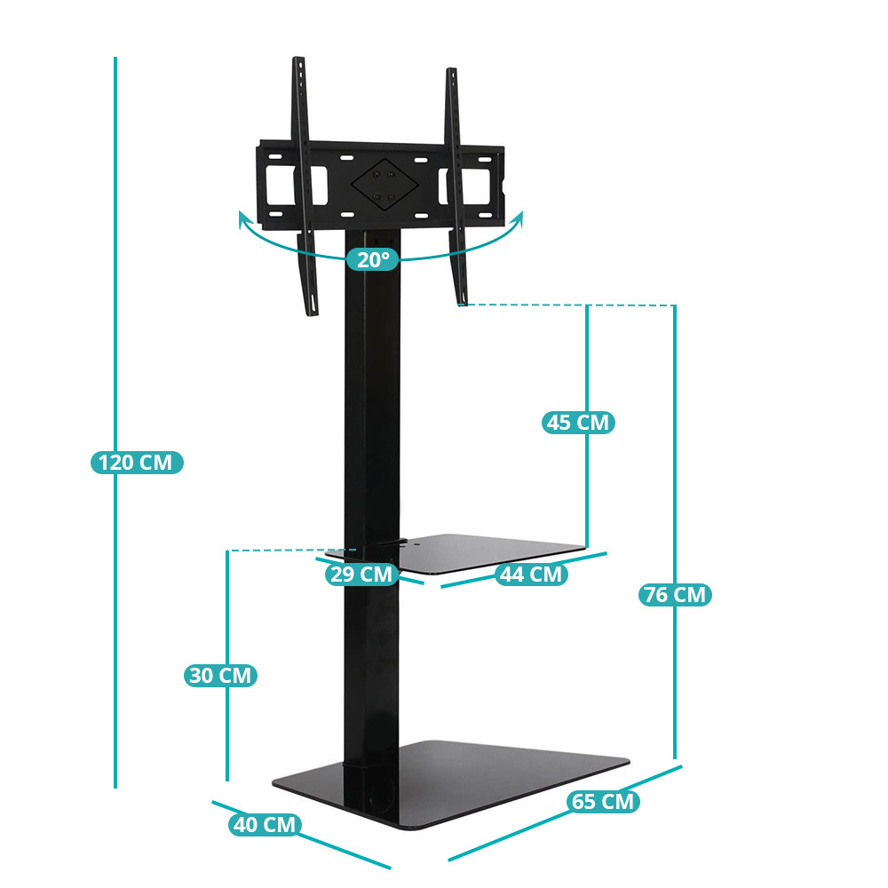 Stojací TV stojan nabízí univerzální kompatibilitu a je použitelný podle standardu VESA od 100x200 mm do 400x600 mm. Lze jej nastavit do tří různých výšek (od 103 cm do 111 cm), což umožňuje každému najít ideální úhel sledování.