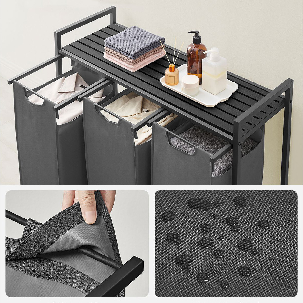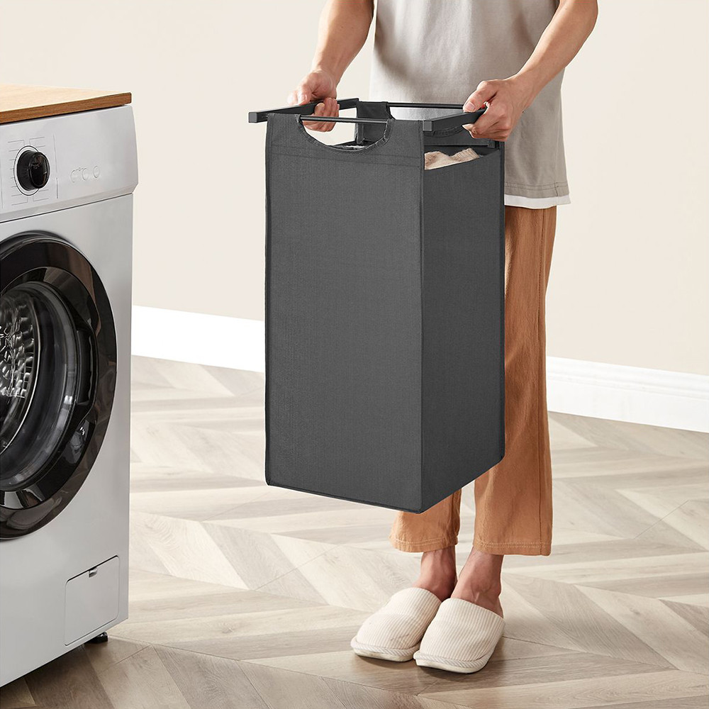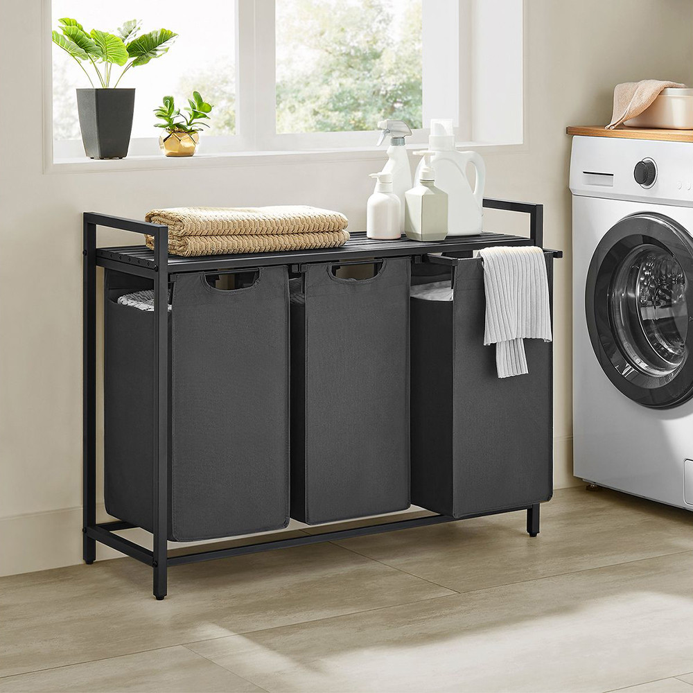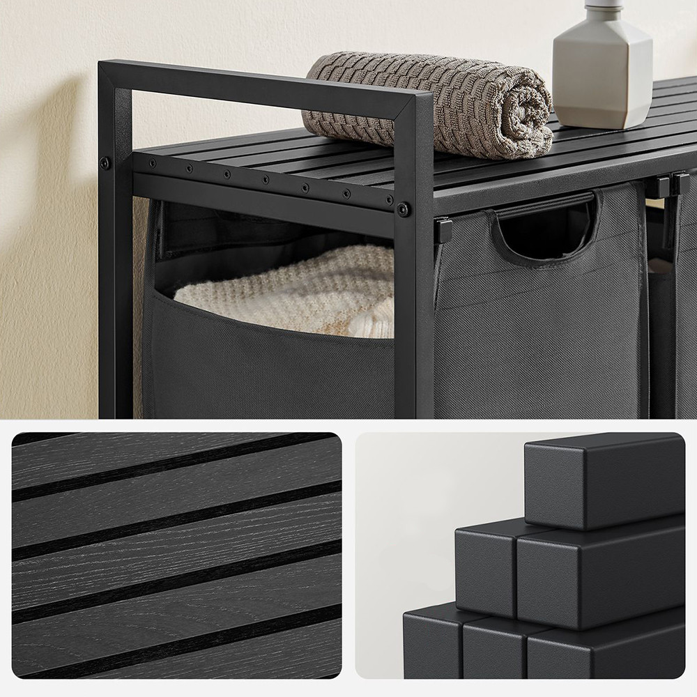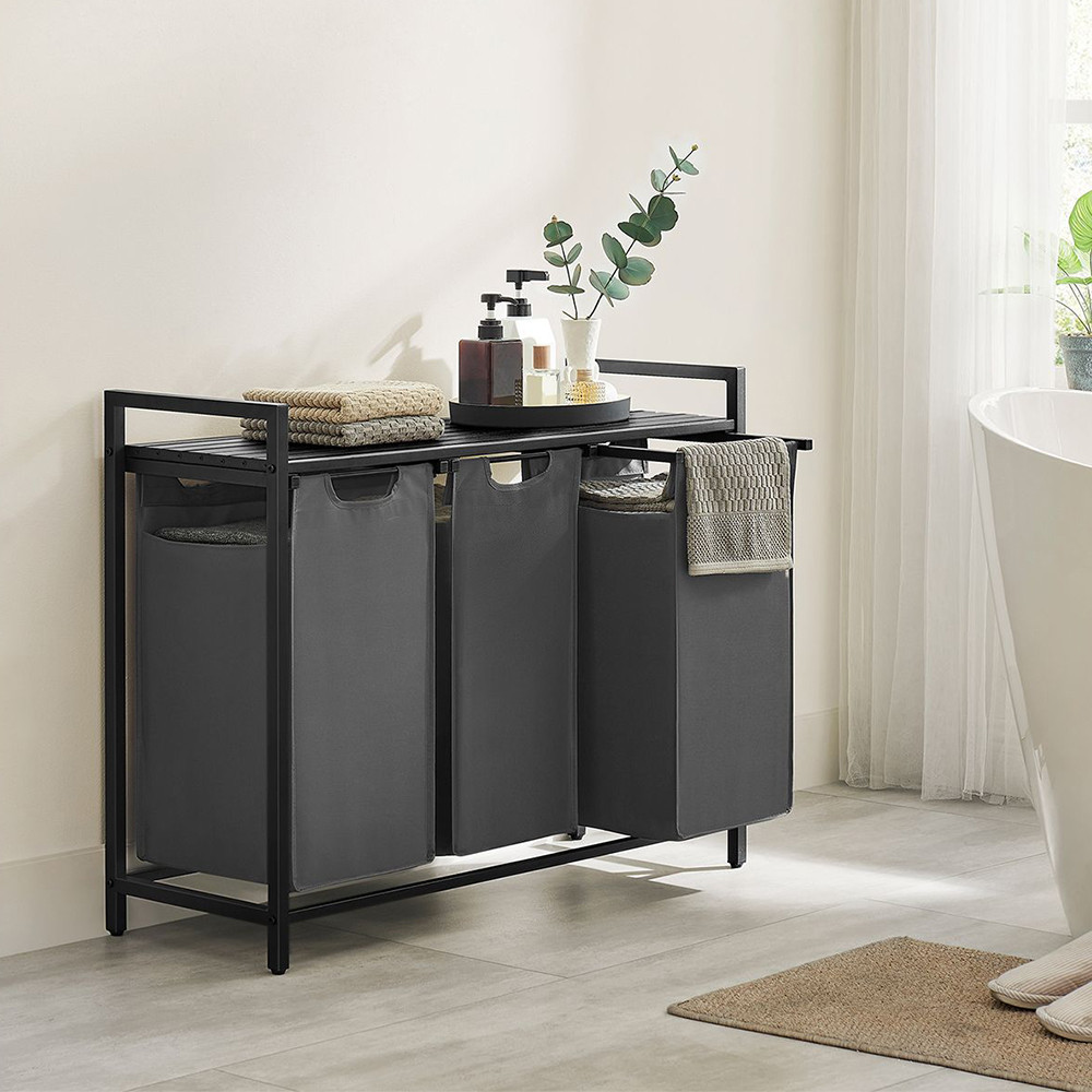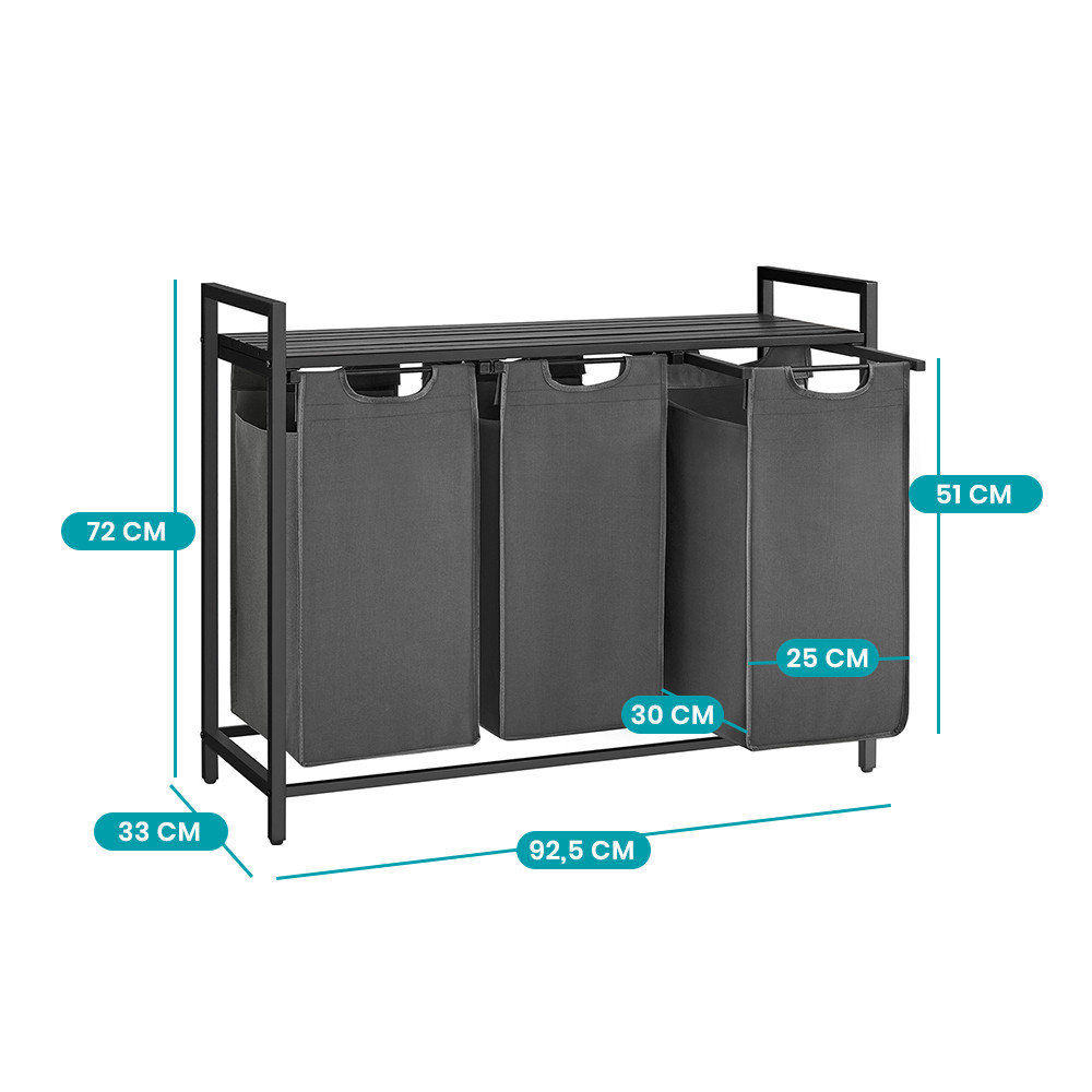 Máte dost rozházeného prádla v koupelně? Tento tříkomorový koš na prádlo pomáhá udržet pořádek a zároveň oživí interiér svým stylovým tmavě šedým vzhledem. Ať už jej použijete v ložnici nebo prádelně, bude praktickým doplňkem každé domácnosti.