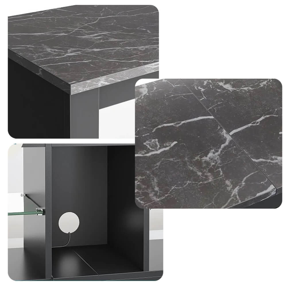 Vestavěné LED osvětlení TV stolku vytváří útulnou a jedinečnou atmosféru v obývacím pokoji, zatímco zdůrazňuje moderní styl interiéru. Intenzita světla je ideální pro zlepšení zážitku ze sledování vašich oblíbených pořadů nebo filmů.