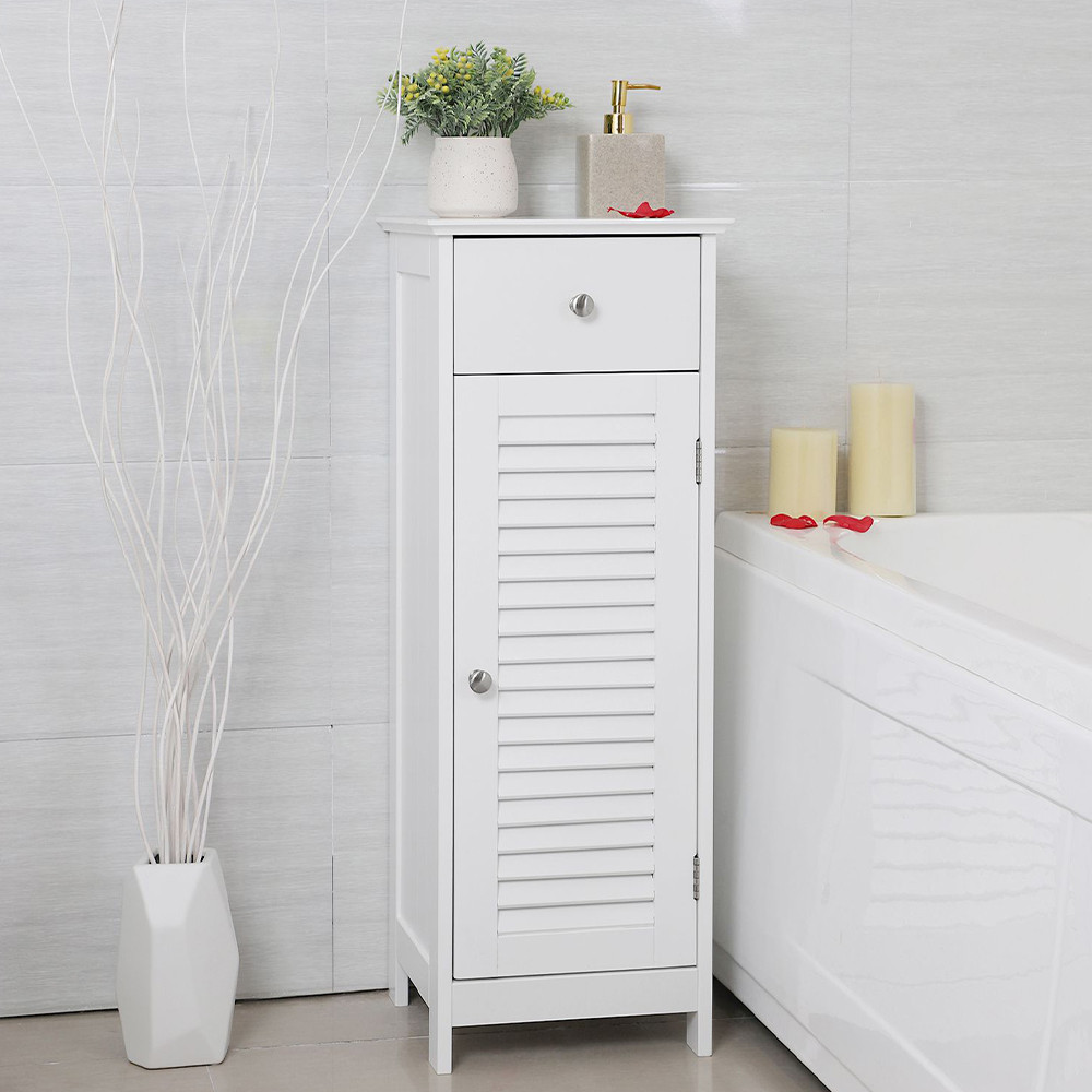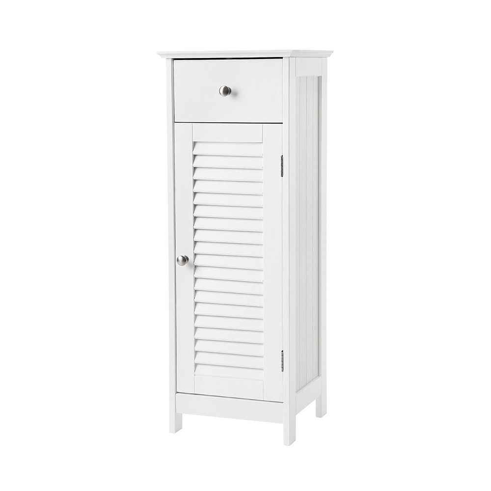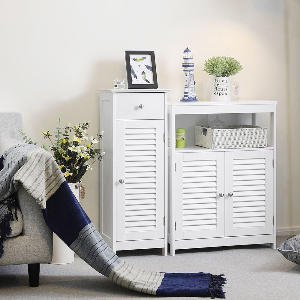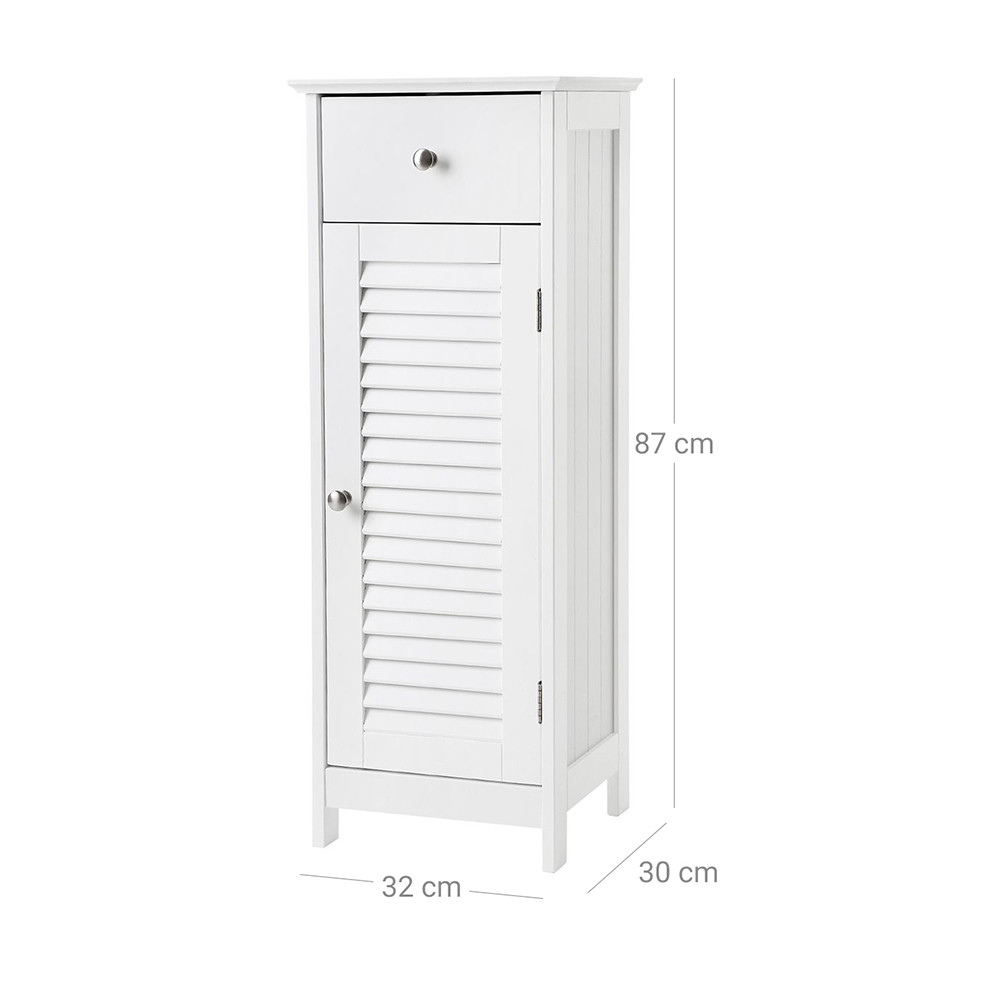 Horní zásuvka je ideální pro drobnosti, zatímco za dvířky jsou dvě prostorné přihrádky na větší koupelnové, ložnicové nebo obývací potřeby.
