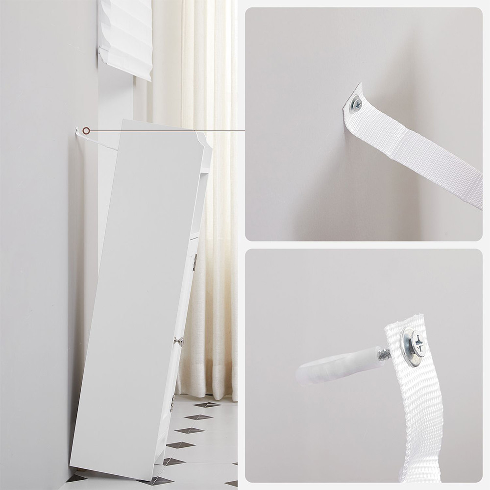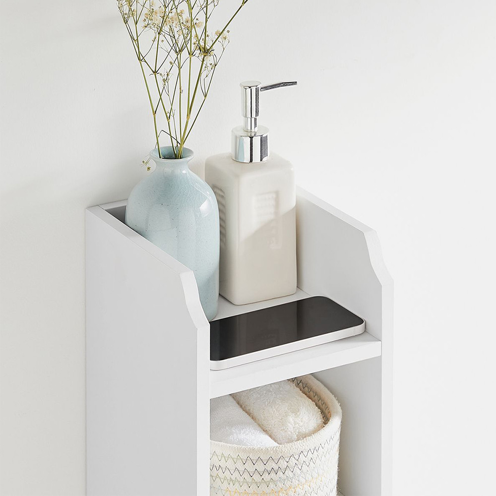 Tato koupelnová skříňka o šířce pouhých 18 cm zabere málo místa, ale nabízí dostatek prostoru pro toaletní potřeby, čisticí prostředky nebo náhradní role.