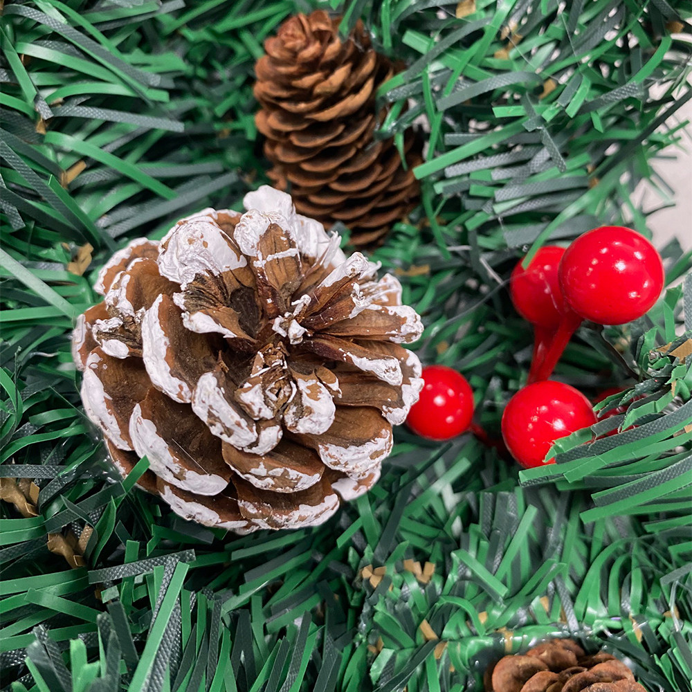Vďaka kvalitným materiálom si veniec zachová svoj vzhľad aj po rokoch používania. Dôkladne umiestnené ozdoby zabezpečujú, že si veniec udrží svoju bohatú a elegantnú formu počas celej sezóny.
