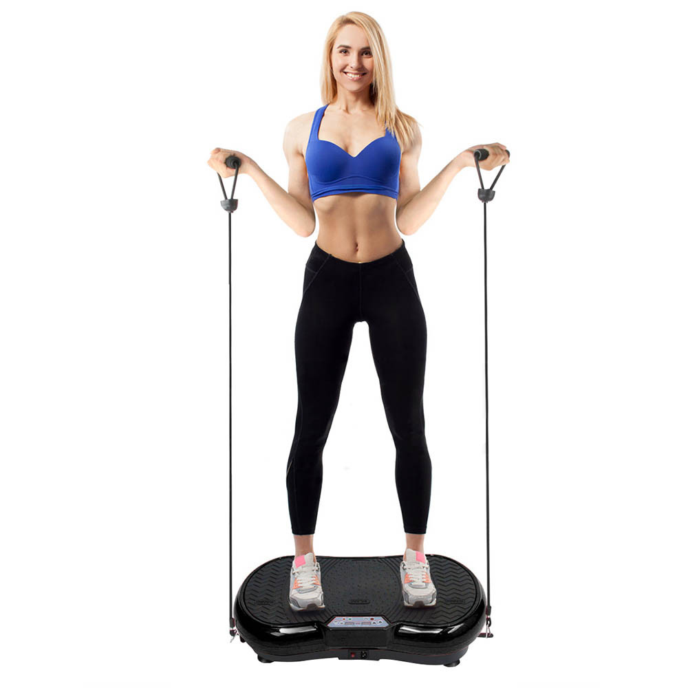 Díky nastavitelným úrovním vibrací si každý najde své tempo. Se strojem lze provádět celotělové, dřepové, jednostranné, sedací i lýtkové cviky.