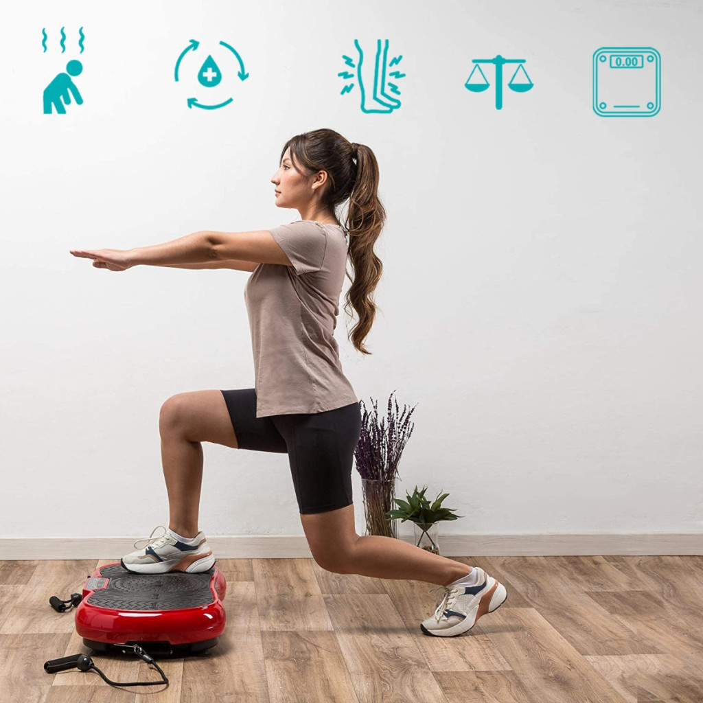 Díky nastavitelným úrovním vibrací si každý najde své tempo. Se strojem lze provádět celotělové, dřepové, jednostranné, sedací i lýtkové cviky.