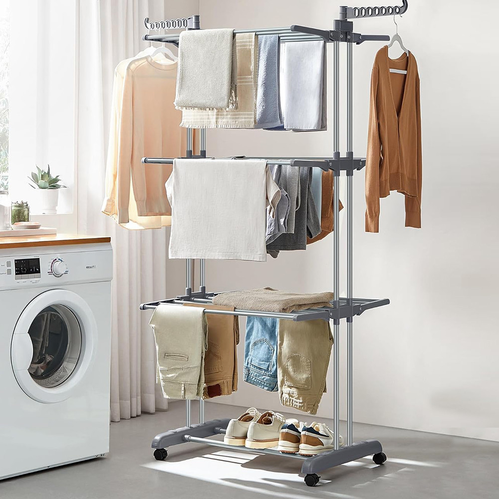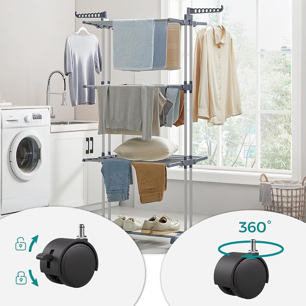 4patrový sušák se sklopnými policemi je ideálním řešením pro sušení většího množství prádla. Pohodlně na něj umístíte ložní prádlo, ručníky, obuv či více kusů oblečení – a to i v malých bytech.