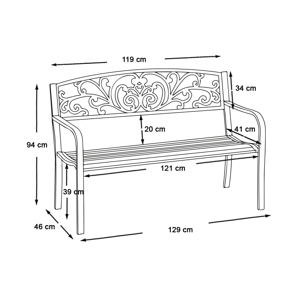 S naší zahradní lavičkou si můžeš pohodlně vychutnat chvíle venku. Ideální volba na zahradu nebo terasu – elegantní design v klasické černé barvě zapadne do jakéhokoliv prostředí.