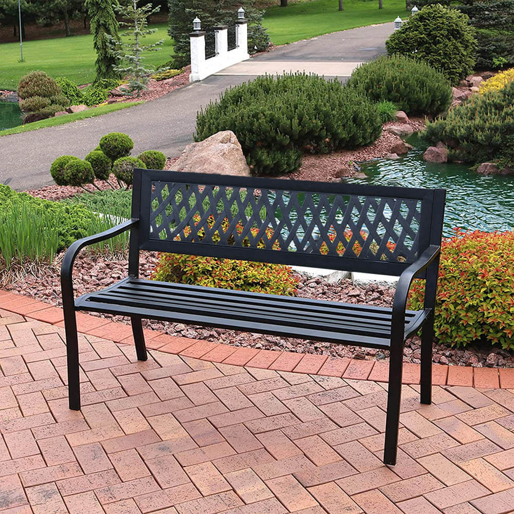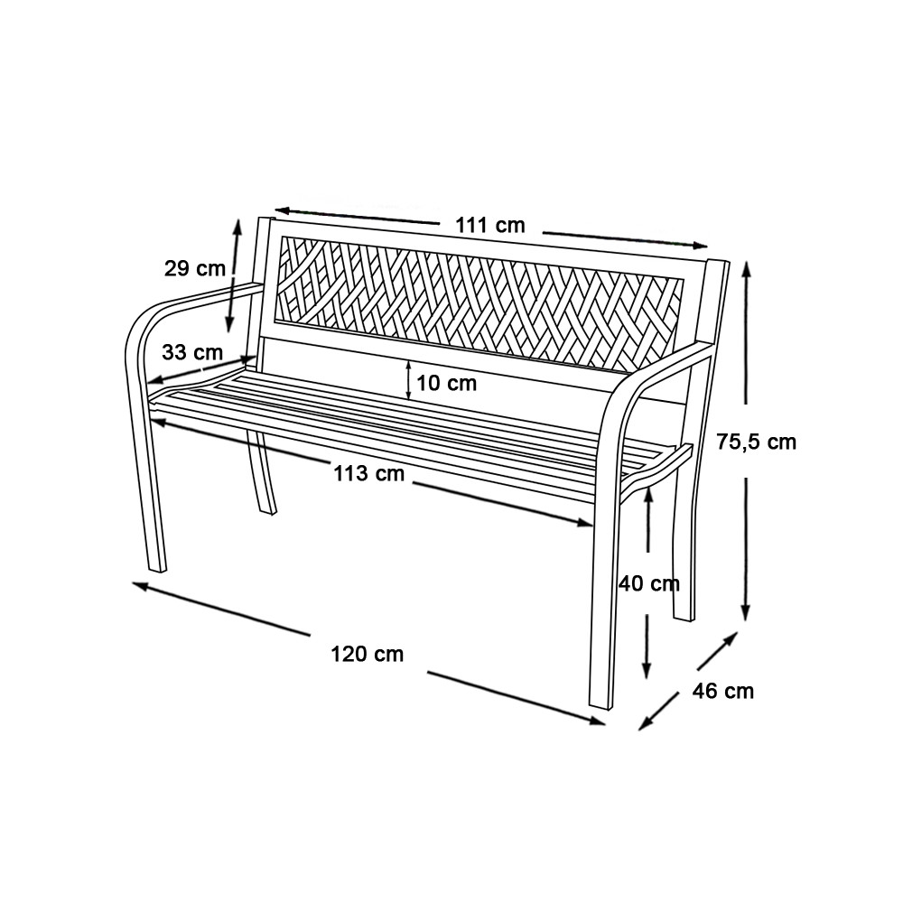 Černá barva a mřížkované opěradlo představují elegantní a zároveň decentní styl, který snadno zapadne do jakéhokoli venkovního prostředí. Lavice je estetickým doplňkem zahrady i praktickým kusem nábytku.