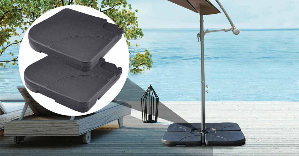 Lehká plastová konstrukce se prázdná snadno přenáší a skladuje, po naplnění vodou nebo pískem však poskytuje skvělou stabilitu. Díky nastavitelné hmotnosti lze přizpůsobit okolnímu prostředí i typu slunečníku.